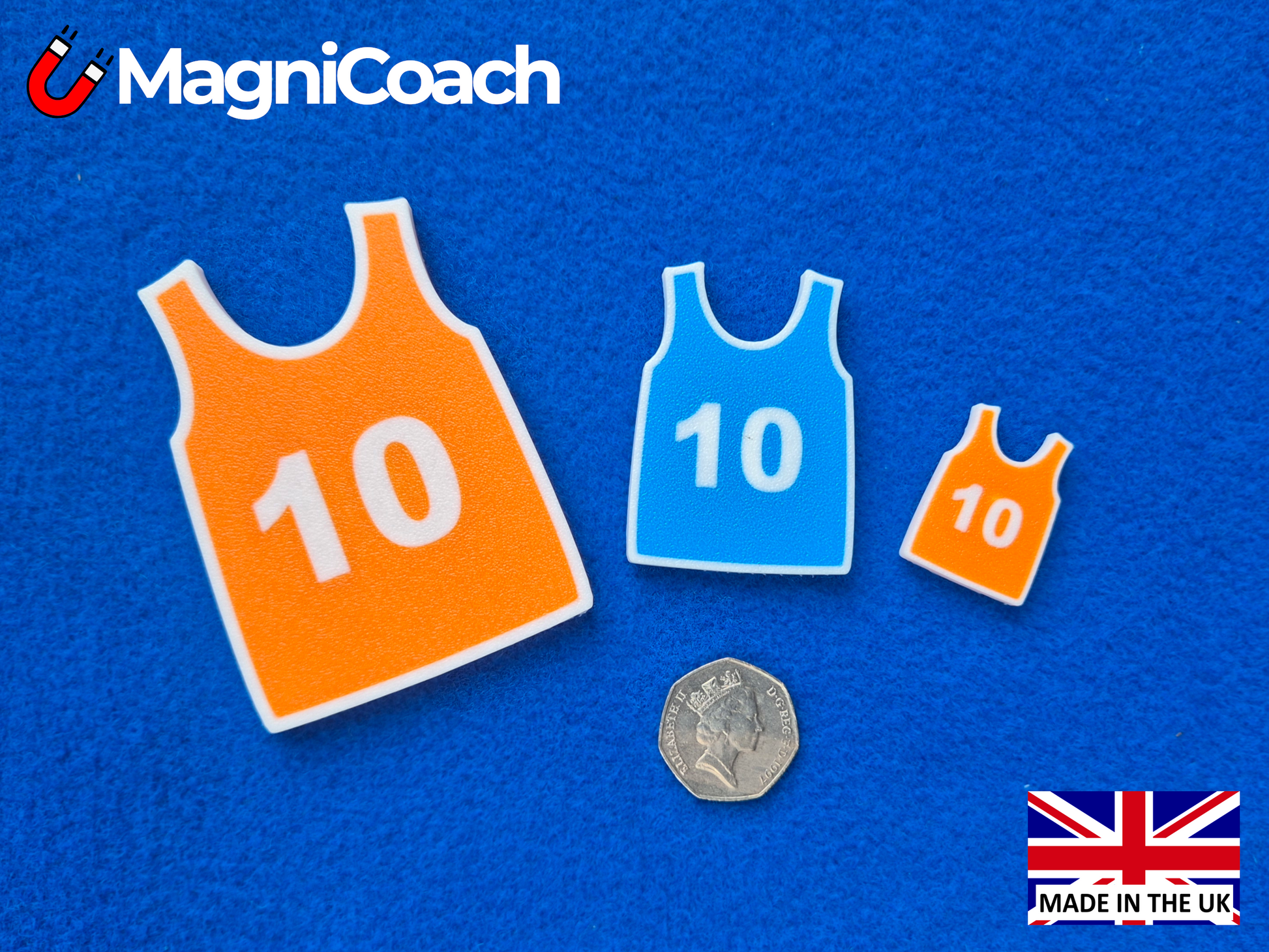 Visualise player movement, rotations, and strategies with the MagniCoach Numbered Vest Set – a versatile tool for coaches of basketball, handball, or any numbered team sport. Available in Small (35mm), Medium (60mm), and Large (90mm), each set includes 15 magnetic vest markers clearly numbered 1 to 15.