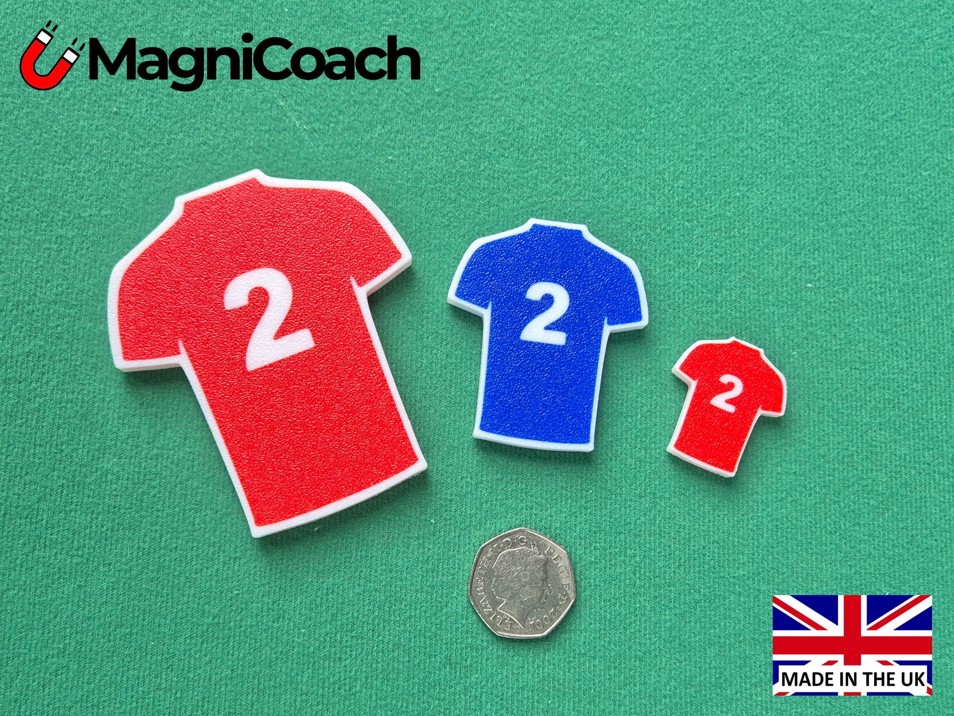 Bring clarity and professionalism to your coaching sessions with the MagniCoach 50/50 Shirt Football Set available in different sizes to suit pitch side or dressing room team/tactic talks (Small (35mm), Medium (60mm) and Large (90mm)). Designed for coaches who want a clean, effective way to demonstrate tactics, formations, and match-day plans, this set features 11 magnetic shirt-shaped markers in a bold colour scheme.