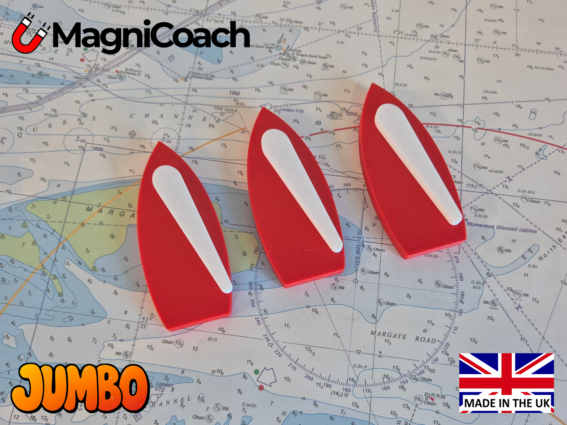 Perfect for team-based training or demonstrating starboard-tack scenarios, this set of 3 magnetic red dinghies is designed to complement your Jumbo classroom sets. Each boat measures 100mm and sticks securely to whiteboards or metal boards.