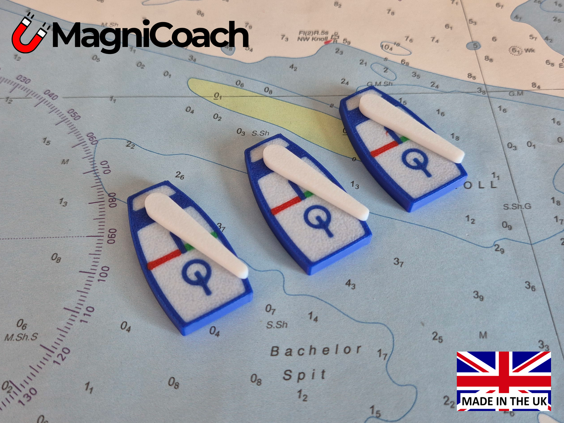 Each boat is magnetic and designed for use on whiteboards and metal coaching surfaces — ideal for fleet management exercises, beginner sail training, and visualising start sequences or team racing drills.