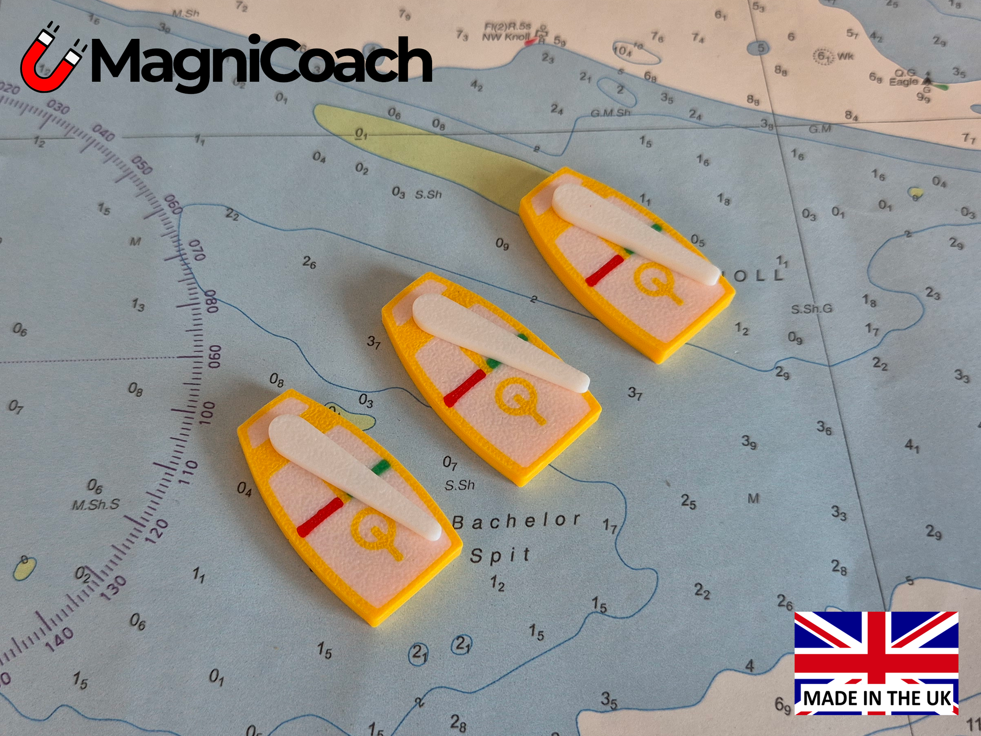 Each boat is magnetic and designed for use on whiteboards and metal coaching surfaces — ideal for fleet management exercises, beginner sail training, and visualising start sequences or team racing drills.