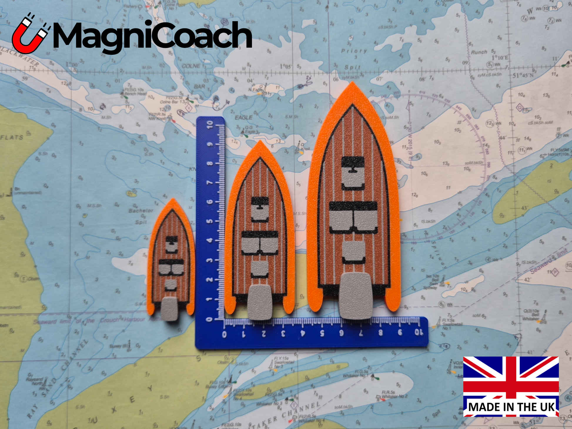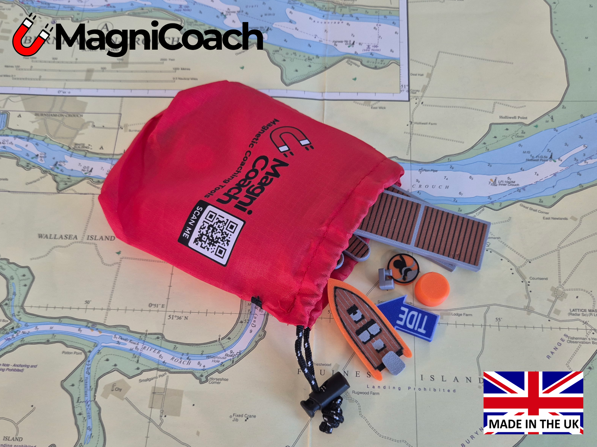 Designed specifically for RYA Powerboat Level 2 instruction, this magnetic PB2 Trainer Set includes a 60mm (Small), 90mm (Medium) or 120mm (Large) RIB, two pontoons, two finger pontoons, two dumpy navigation marks, and a man overboard marker (MOB). Ideal for whiteboard or metal board use, these compact and durable pieces help instructors demonstrate key manoeuvres such as coming alongside, turning in confined spaces, and MOB recovery drills. Perfect for classroom briefings or scenario walkthroughs, this set helps bring practical exercises to life. Pocket-sized and easy to transport, it’s an essential resource for powerboat instructors and maritime trainers.