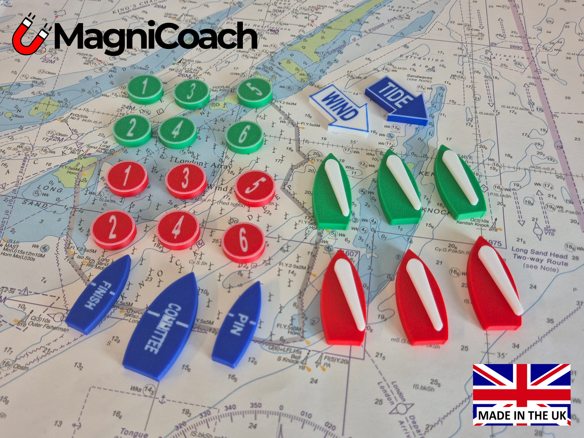 Enhance your sailing instruction with our magnetic boats and buoys, now available in three sizes – Small (40mm), Medium (70mm), and Large (100mm) – to suit everything from compact dinghy park briefings to large-scale classroom or club demonstrations.