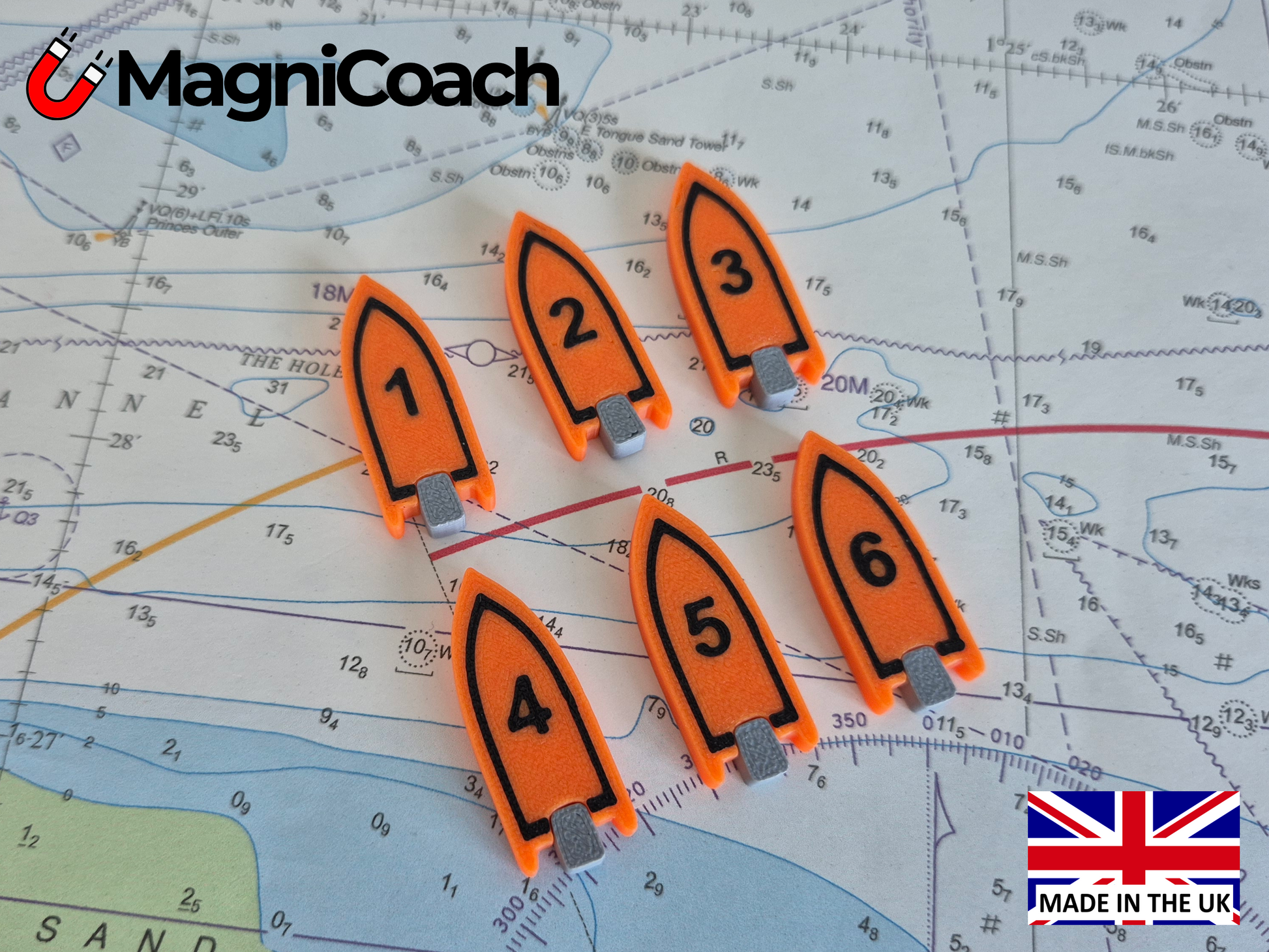 This pack of 6 magnetic safety boats lets you expand your training scenarios for rescue drills, instructor-led coaching, or PB2 discussions. Great for showing positioning and support boat movement.