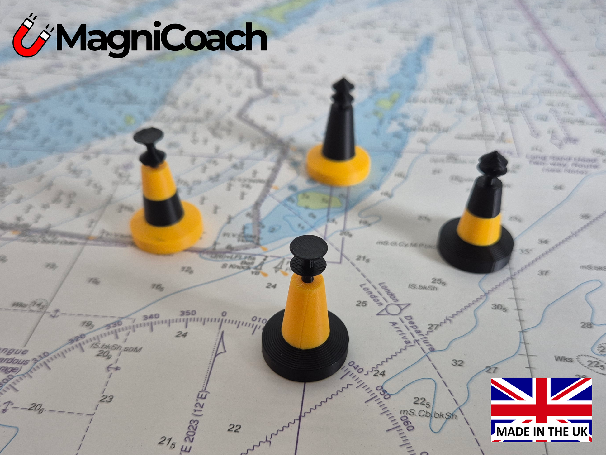 Bring clarity to advanced navigation training with this set of magnetic IALA cardinal marks. Featuring North, South, East, and West markers, this compact set is ideal for teaching the cardinal buoyage system used to indicate safe water in all directions. Designed for use on whiteboards or metal surfaces, these teaching aids are perfect for explaining danger areas, tidal streams, and route planning in powerboat and sailing courses. Lightweight and pocket-sized for easy transport, they’re a valuable addition to any instructor’s toolkit. Ideal for RYA courses and maritime training sessions.