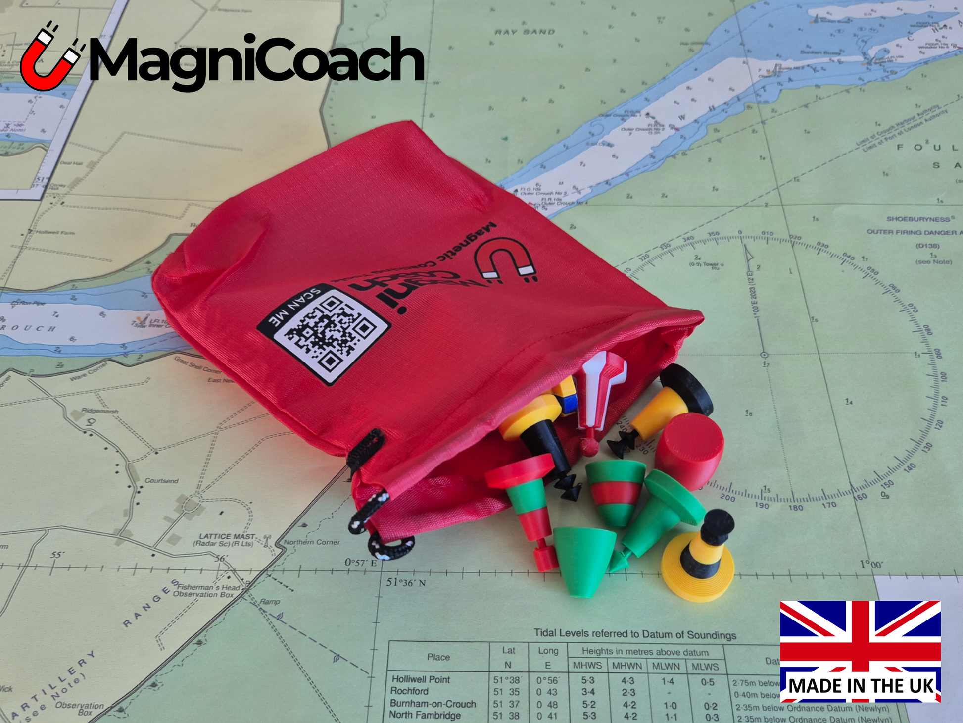 Bring clarity to advanced navigation training with this set of magnetic IALA marks. Featuring North, South, East, and West Cardinal marks, Isolated Danger, Safe Water, New Danger, and a Special Mark plus eight IALA (A) channel marks. This compact set is ideal for teaching the buoyage system used to indicate safe water and shipping. Designed for use on whiteboards or metal surfaces, these teaching aids are perfect for explaining danger areas, tidal streams, and route planning in powerboat and sailing courses. Lightweight and pocket-sized for easy transport, they’re a valuable addition to any instructor’s toolkit. Ideal for RYA courses and maritime training sessions.