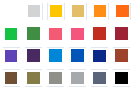 White, Light Grey, Sunflower Yellow, Gold, Pumpkin Orange, Orange