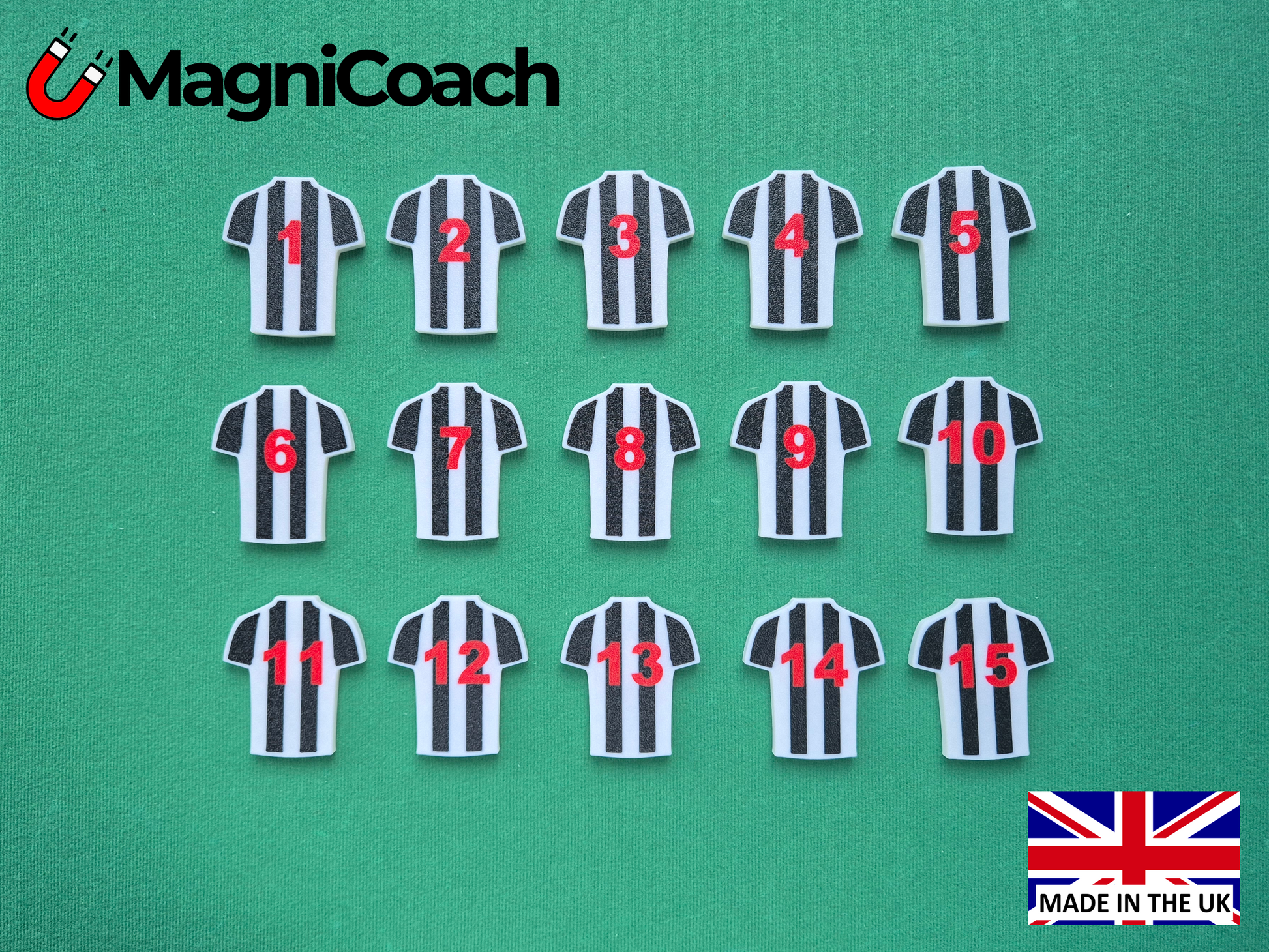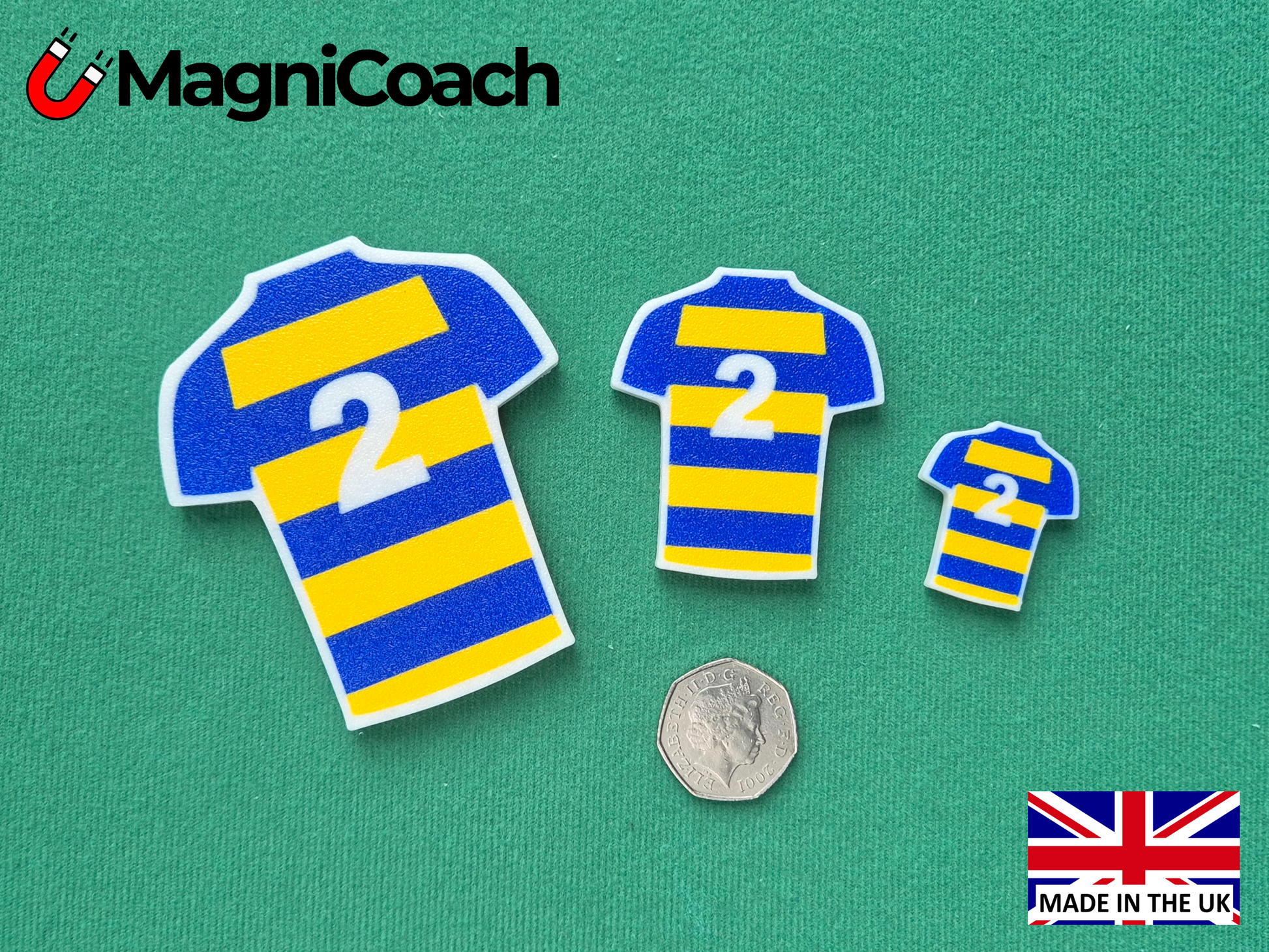 Bring structure and clarity to your game plans with the MagniCoach Vertical Stripe Rugby Shirt Set available in Small (35mm), Medium (60mm) and Large (90mm). This set of 15 magnetic markers is designed specifically for rugby coaches who want a simple, visual way to lay out formations, plan phases, and run through set plays on a magnetic board.
